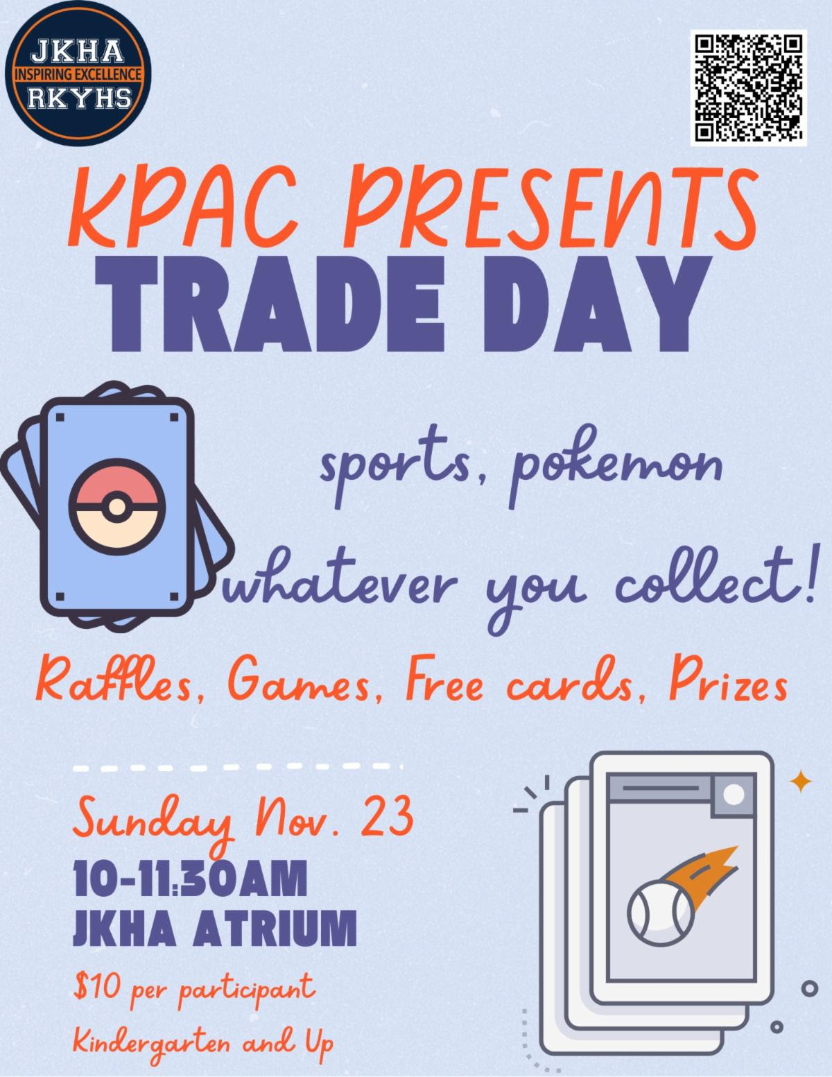 KPAC will be hosting a Card Trade Day on Sunday, November 23, from 10:00–11:30 AM at Joseph Kushner Hebrew Academy.